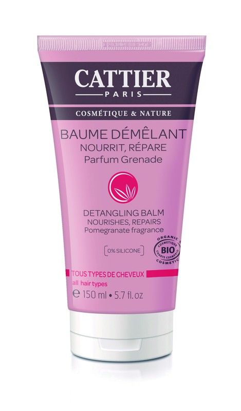 El bálsamo desenredante Cattier nutre en profundidad, repara y revitaliza el cabello sin apelmazarlo. Su textura suave y cremosa libera un delicioso perfume de granada. Rico en aloe vera, protector y nutritivo, fortalece la fibra capilar, alisa las cutículas y doma el cabello. El complejo Amisol TrioTM restaura la barrera lipídica del cuero cabelludo y aporta brillo, flexibilidad y volumen. Protegido de las agresiones externas, el cabello queda suave, sedoso y fácil de peinar. Modo de empleo: Después de lavar el cabello, eliminar el exceso de humedad y aplicar sobre el producto. Extender uniformemente en el largo y las puntas del cabello. Dejar actuar unos minutos y enjuagar con abundante agua tibia. ECOCERT.