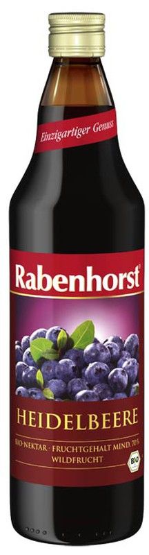 100 % zumo puro.Tras su selección, los aromáticos arándanos silvestres son procesados en el propio lagar de la casa Rabenhorst. Agitar bien y consumir en los 10 días posteriores a su apertura. ECOCERT.
